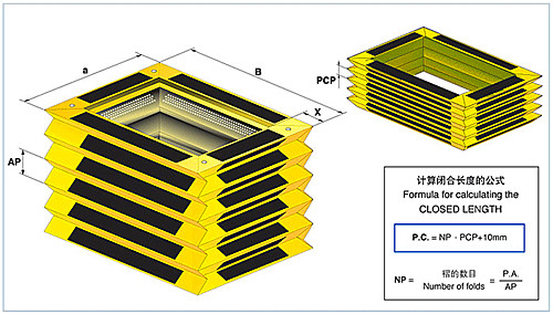 P.A.= 打開長度 B = 外側(cè)寬度 P.C.= 閉合長度 a=外側(cè)高度 行程 =打開長度 -閉合長度 x=折疊高度 計(jì)算閉合長度的公式 |