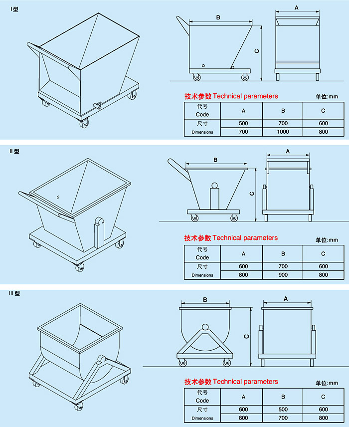 ●JXC 型集屑車(chē)(料斗)用于收集各種機(jī)床排屑裝置傳送下來(lái)的各種切屑,集屑車(chē)(料斗)底部裝有腳輪,可將切屑送出工作場(chǎng)地,便于集中清理。集屑車(chē)(料斗)分為干式與濕式兩種,干式料斗可以傾斜,將切屑倒出即可,濕式是在干式基礎(chǔ)上加過(guò)濾板,放液閥,便于切屑中的切屑液與切屑分離起到回收環(huán)保作用。可根據(jù)不同排屑量,不同用戶的要求.設(shè)計(jì)各種容積、功能的集屑車(chē)(料斗)。