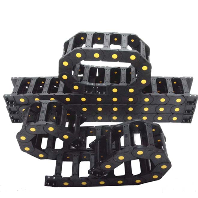 此類拖鏈材質為玻璃纖維強尼龍注塑而成,主要分為橋式、全封閉,品類齊全,規格繁多,可根據不同設備選用。